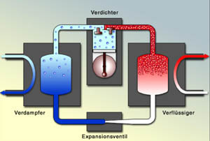 sie der Umgebung Wärme. Das Gas wird anschließend mittels Kompressor auf eine höhere